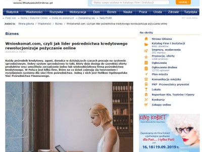 11 września 2019 roku na portalu bialystokonline.pl opublikowany został artykuł pt. „Wnioskomat.com, czyli jak lider pośrednictwa kredytowego rewolucjonizuje pożyczanie online”. … Czytaj więcej